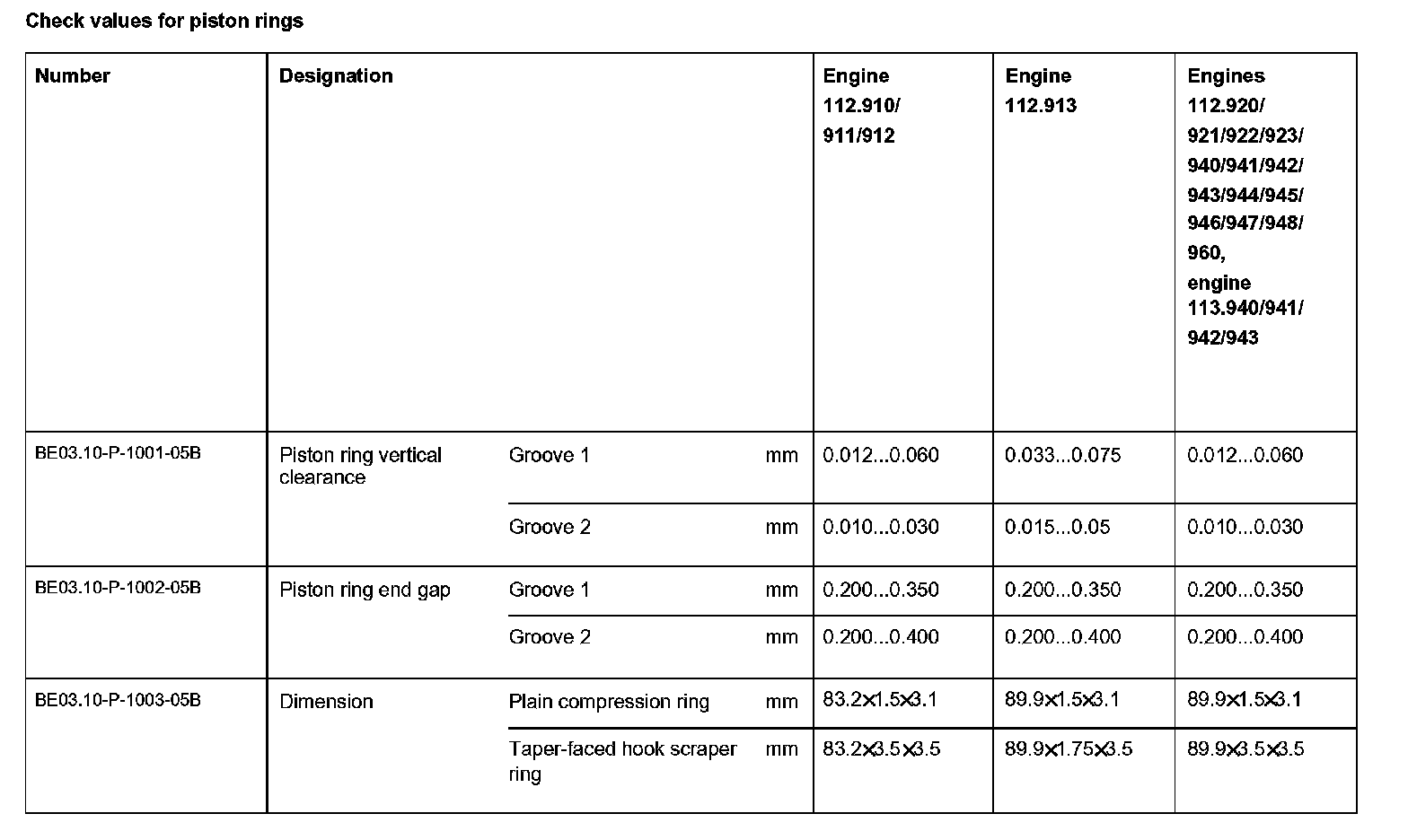 BE03.10-P-1000-05B Check values for piston ringsCheck values for piston rings: