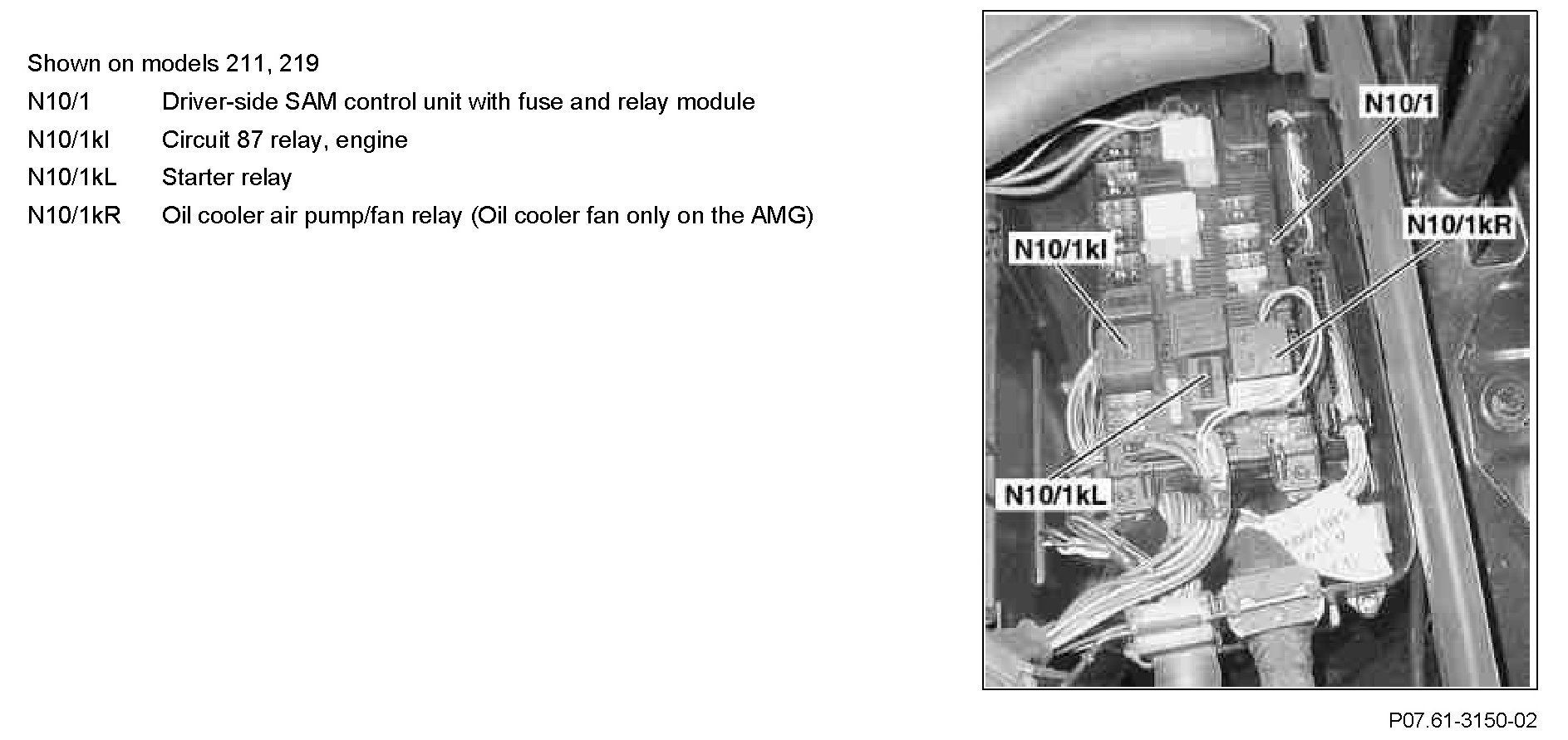 - Models 171, 211, 219: in driver-side SAM control unit with fuse and relay module