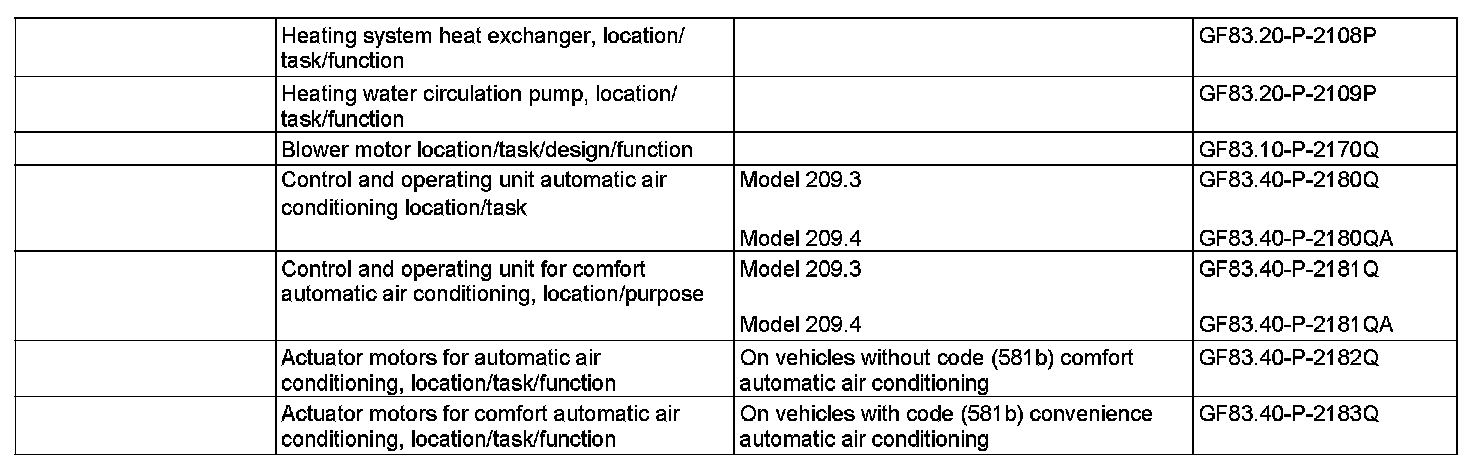 - except CODE (581b) Convenience automatic air conditioning