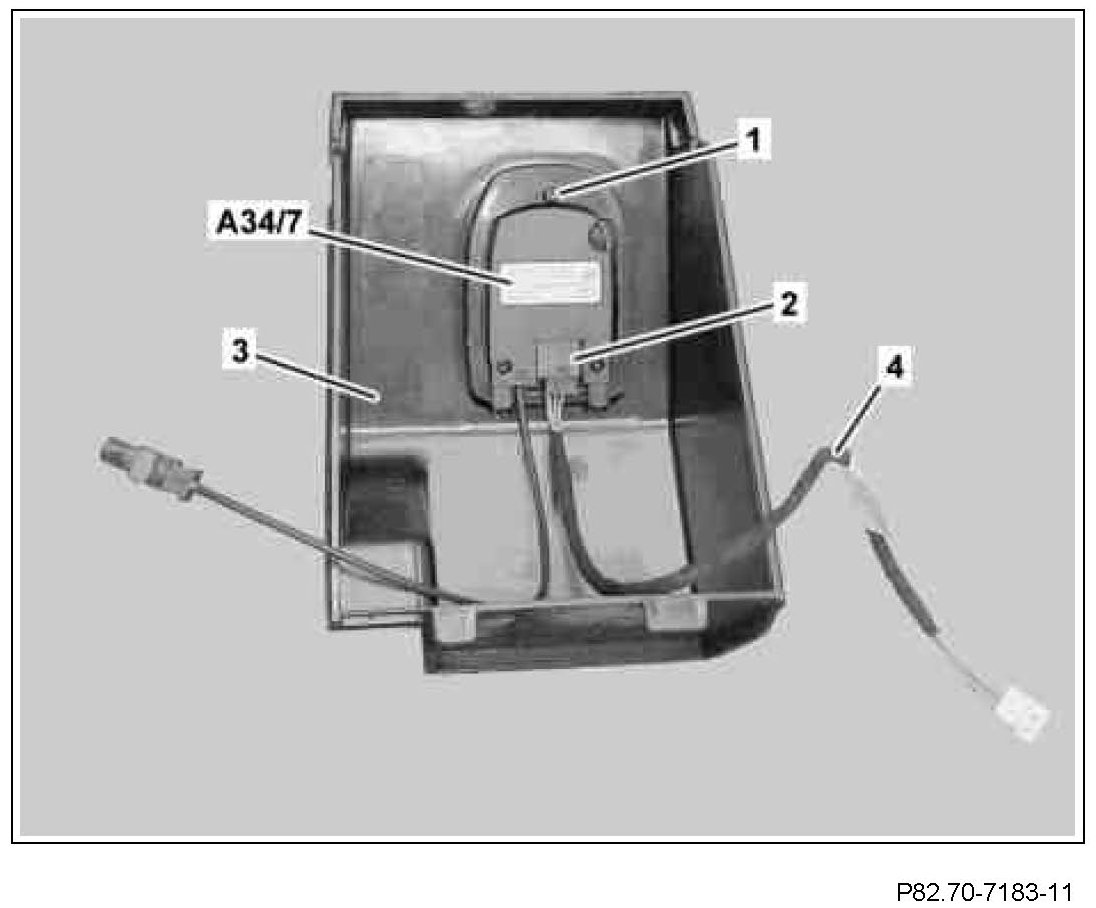 2 Insert Bluetooth module (A34/7) into paneling (3) and screw down using screw/bolt (1).