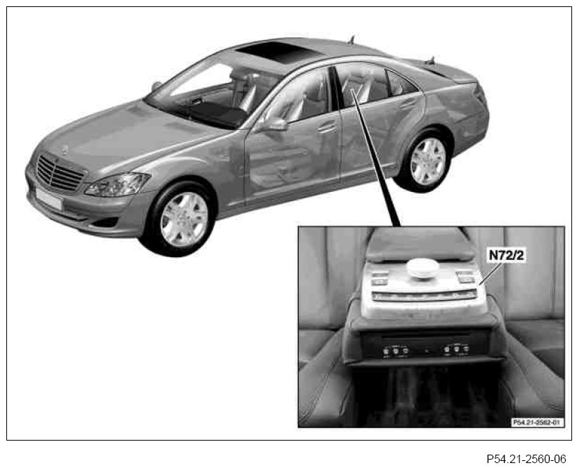 The central gateway control unit (N93) reads in these messages and passes them on to the rear seats control unit (N25/6) via the interior CAN.
