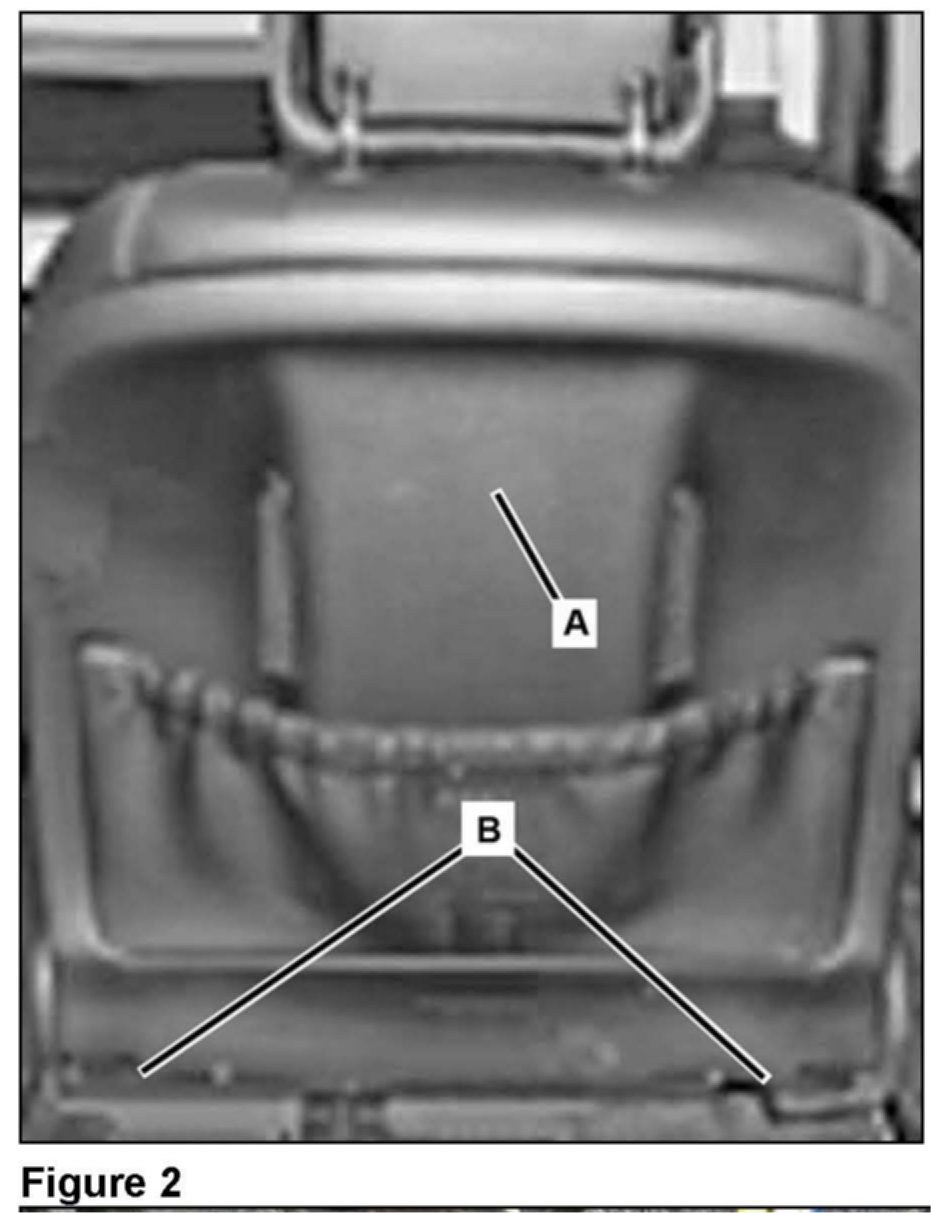 1. Remove seatback lining (A, Figure 2) from backrest of left front seat.