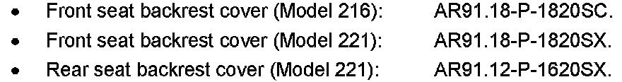 ^ Front seat backrest cover (Model 221): AR91.18-P-1820SX.