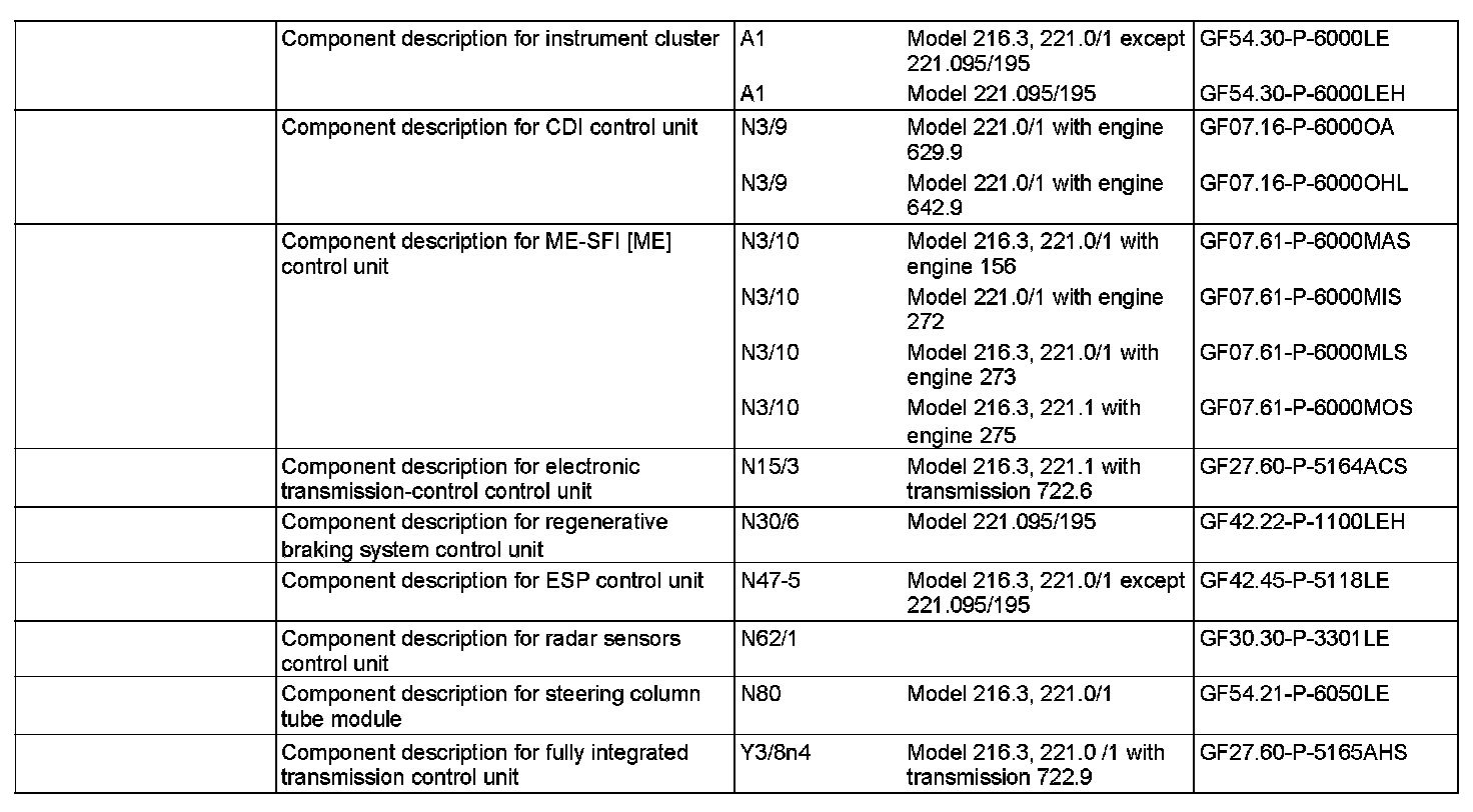 The requests to accelerate or decelerate are transmitted from the radar sensors control unit via the chassis CAN to the CDI control unit (N3/9) (for diesel engines) or ME-SFI [ME] control unit (N3/10) (for gasoline engines) and to the ESP control unit (N47-5) or regenerative braking system control unit (N30/6) (for hybrid).