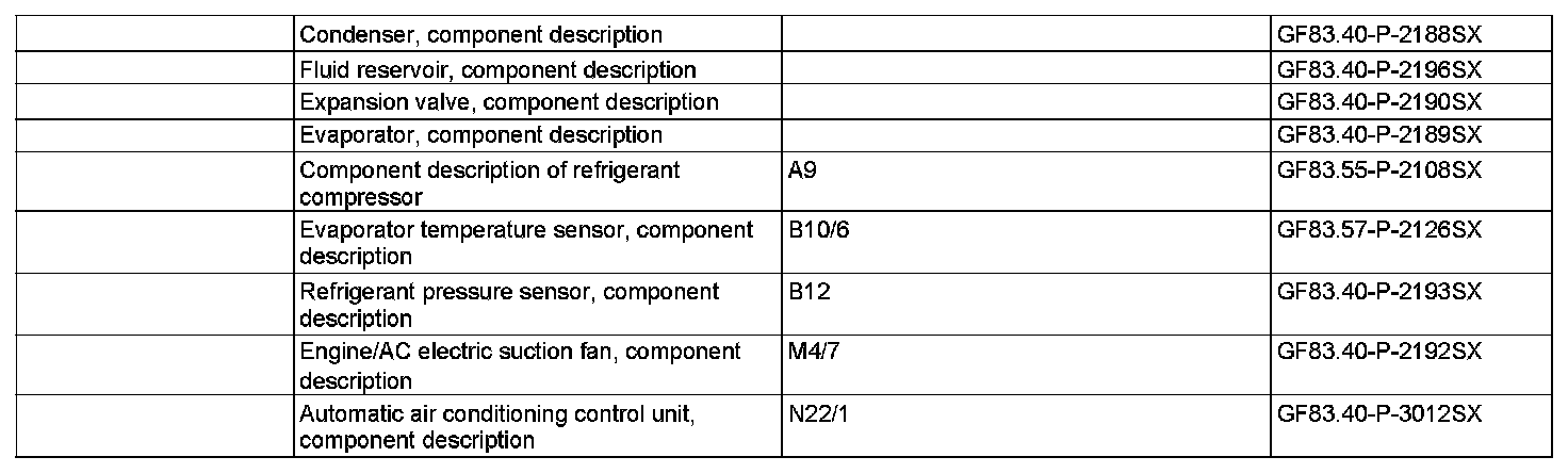 The refrigerant's compression heat is then withdrawn on the surface of the condenser. The refrigerant liquefies during cooling. If cooling by the airstream is not sufficient, air is additionally drawn in by the engine and air conditioning electric suction fan with integrated control (M4/7) to cool the condenser.