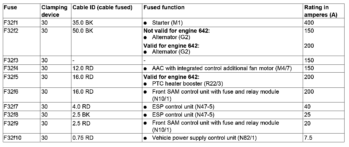 GF54.15-P-1256-07SX Fuse Assignment Of Front Prefuse Box