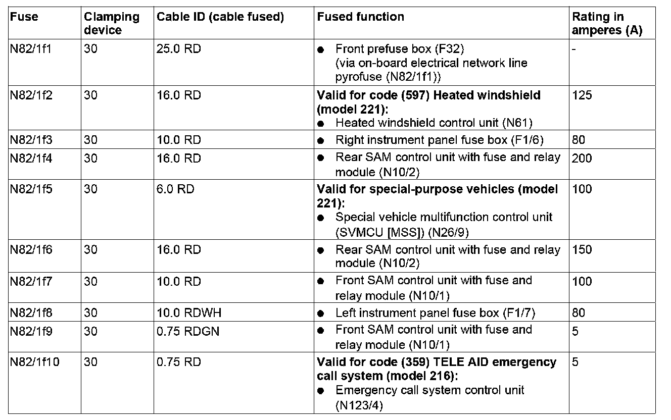 GF54.15-P-1256-17SX Fuse Assignment Of The Vehicle Power Supply Control Unit