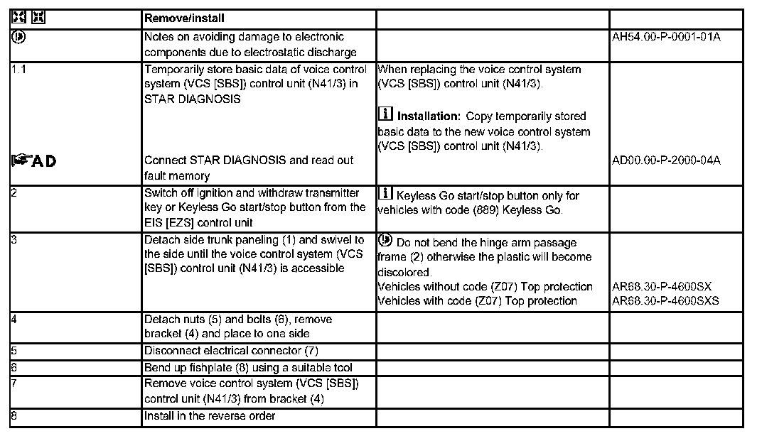 AR82.70-P-0003SX Remove/Install Voice Control System Control Unit