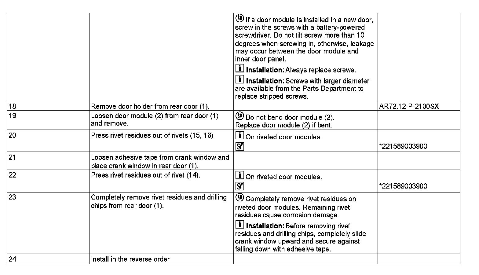 AR72.12-P-0103SX Remove/Install Rear Door Module