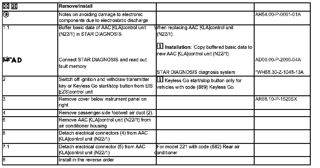 AR83.30-P-6600SX Remove/Install Air Conditioning Control Unit