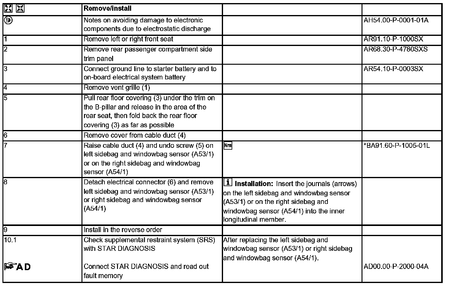 AR91.60-P-0730SXS Remove/Install Sensor For Sidebag/Windowbag