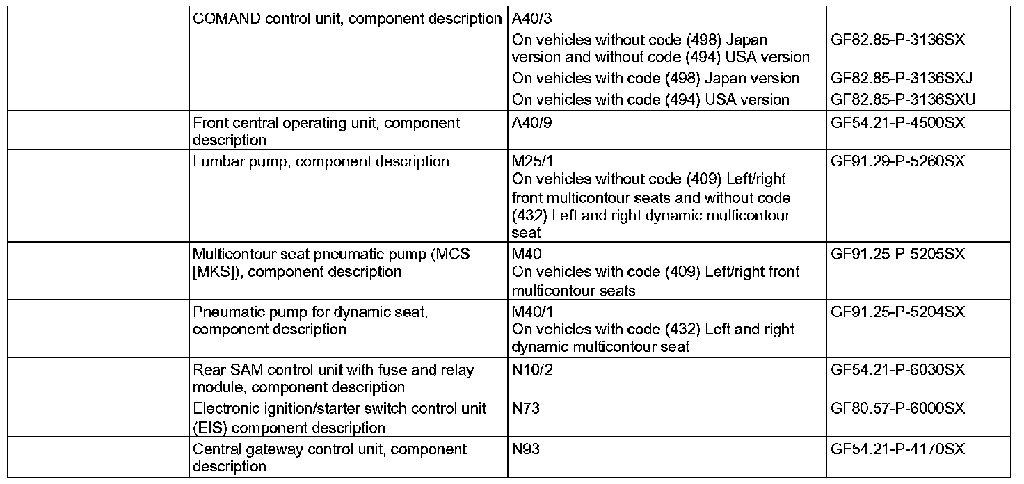- except CODE (223) Rear bench seat with electrically adjustable outer seats with PRE-SAFE positioning function for outer seats and outer head restraints