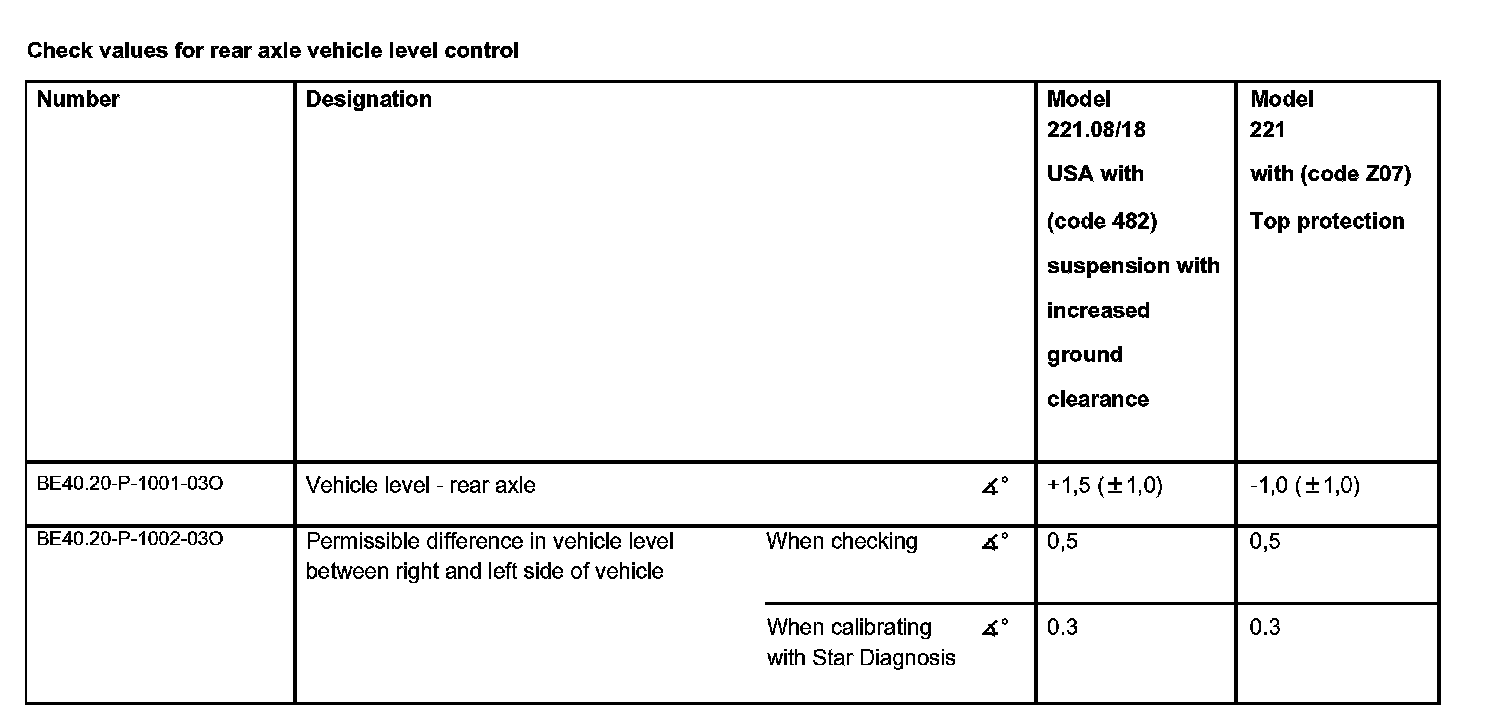Check values for rear axle vehicle level control: