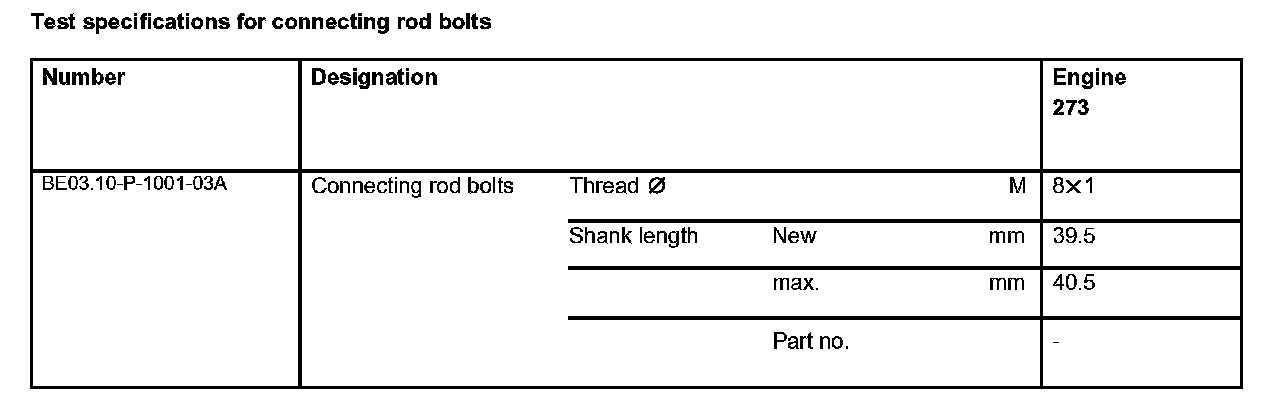 Test specifications for connecting rod bolts: