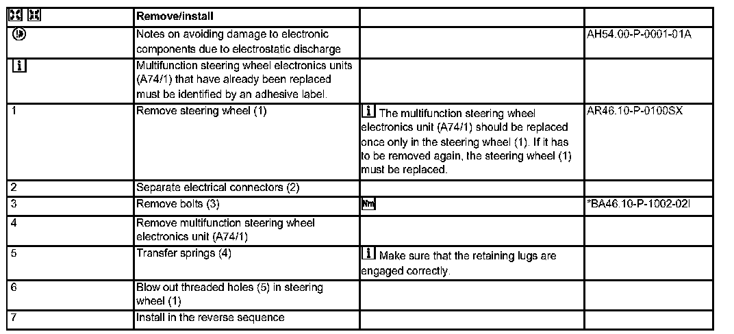 AR54.21-P-2050SX Remove/Install Multifunction Steering Wheel Electronics Unit