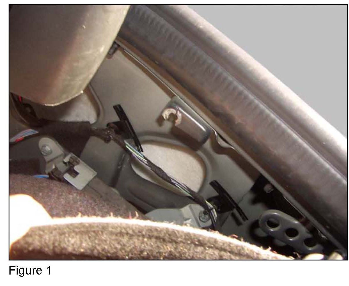 4. Drill out the two outer spot welds (Figure 2, 1) on the mounting console from inside the trunk drill all the way through the console and the vehicle body. Do not drill the center spot weld (Figure 2, 2) at this time.