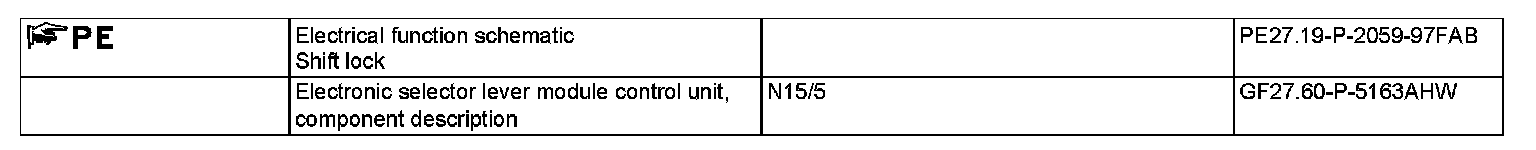 In order to ensure that after parking the vehicle the selector lever is shifted into selector lever position "P", the transmitter key can only be removed from the ignition lock control unit in this position (N73). The vehicle is secured mechanically by locking the transmission with the park pawl gear. Selector lever position "P" can be released manually (Shift-Lock override) in the event of mechanical or electrical faults.