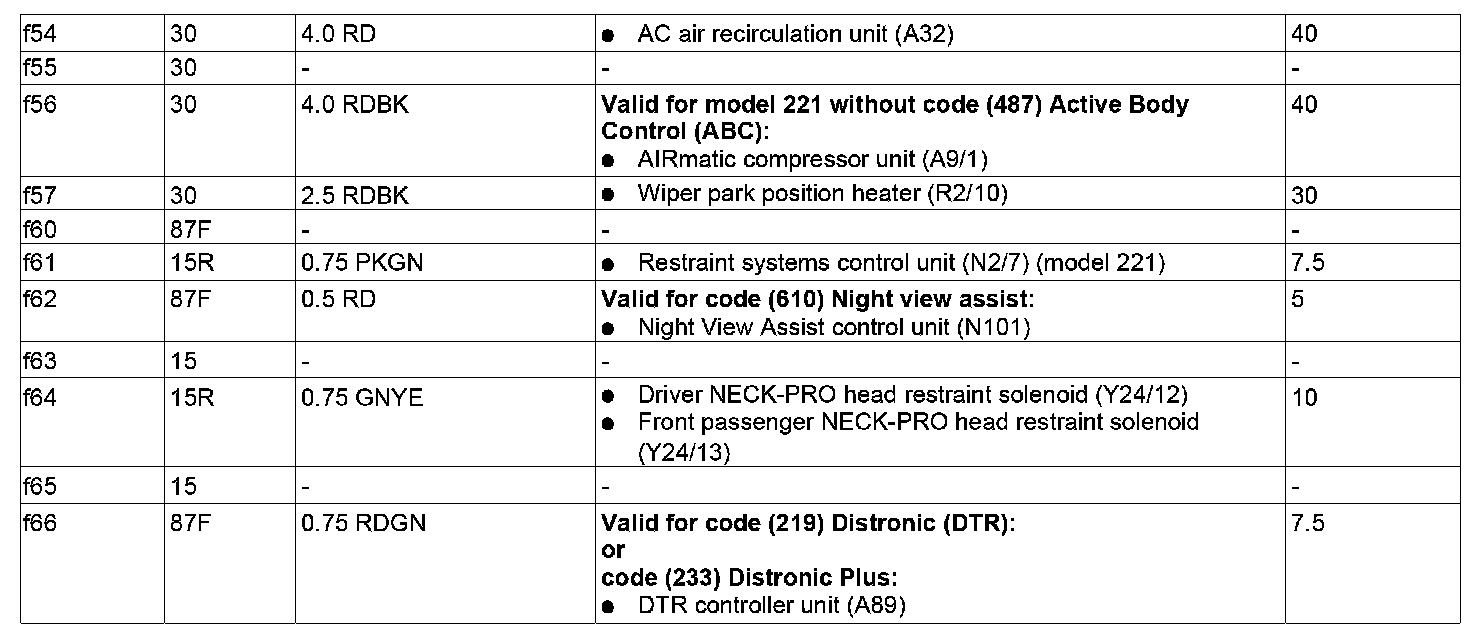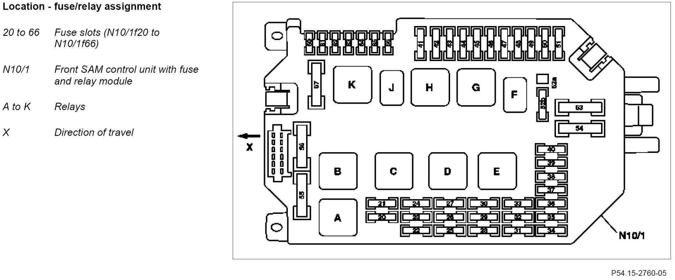 GF54.15-P-1256-03SXS Fuse Assignment Of Fuse And Relay Box In Left Engine Compartment