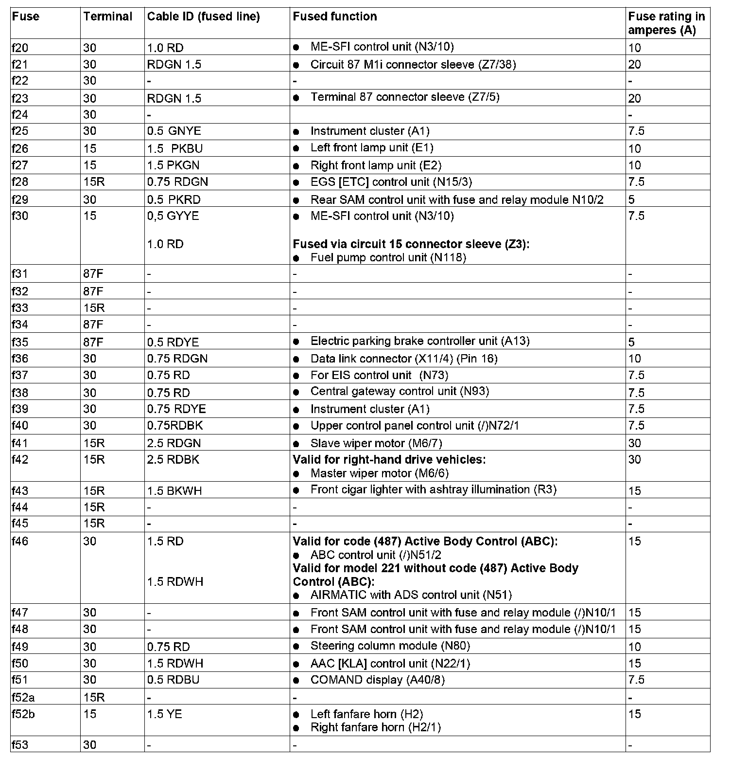 GF54.15-P-1256-03SXS Fuse Assignment of Fuse and Relay Box In Left Engine Compartment