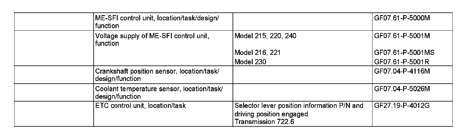 ENGINE 275.981 in MODEL 230 up to Model Year 8