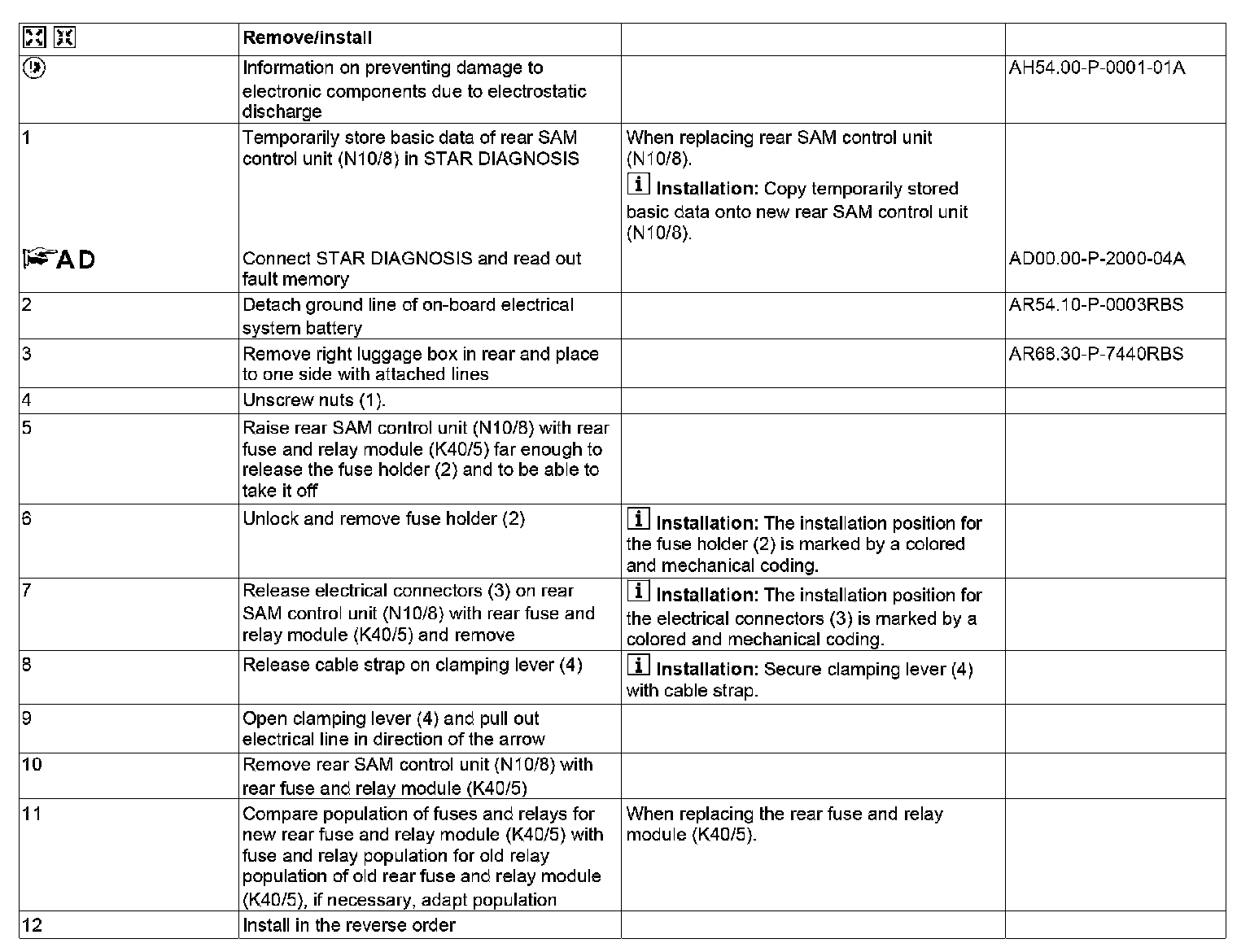AR54.21-P-1259RBS Remove/install SAM Control Unit With Rear Fuse And Relay Box