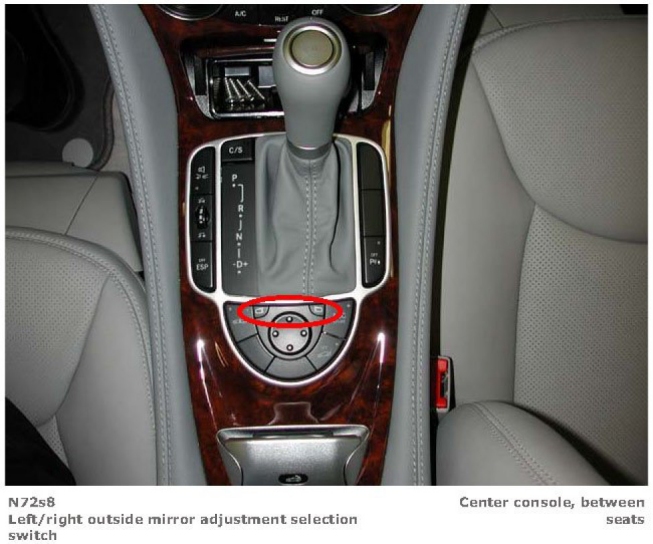 Left/Right Outside Mirror Adjustment Selection Switch (View 1):