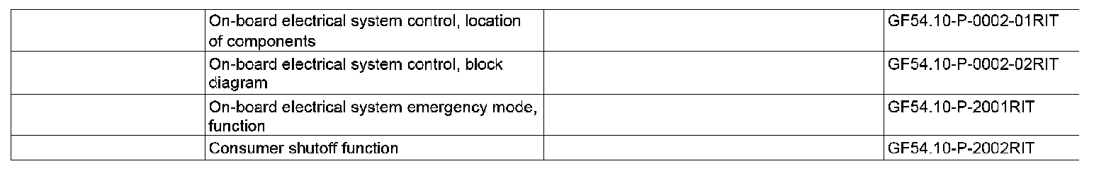 The on-board electrical system control is comprised of the following subfunctions, which are described in separate documents: