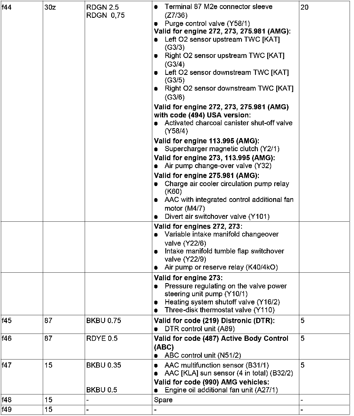 GF54.15-P-1256-02RE Fuse Assignment of Fuse and Relay Box In Right Engine Compartment