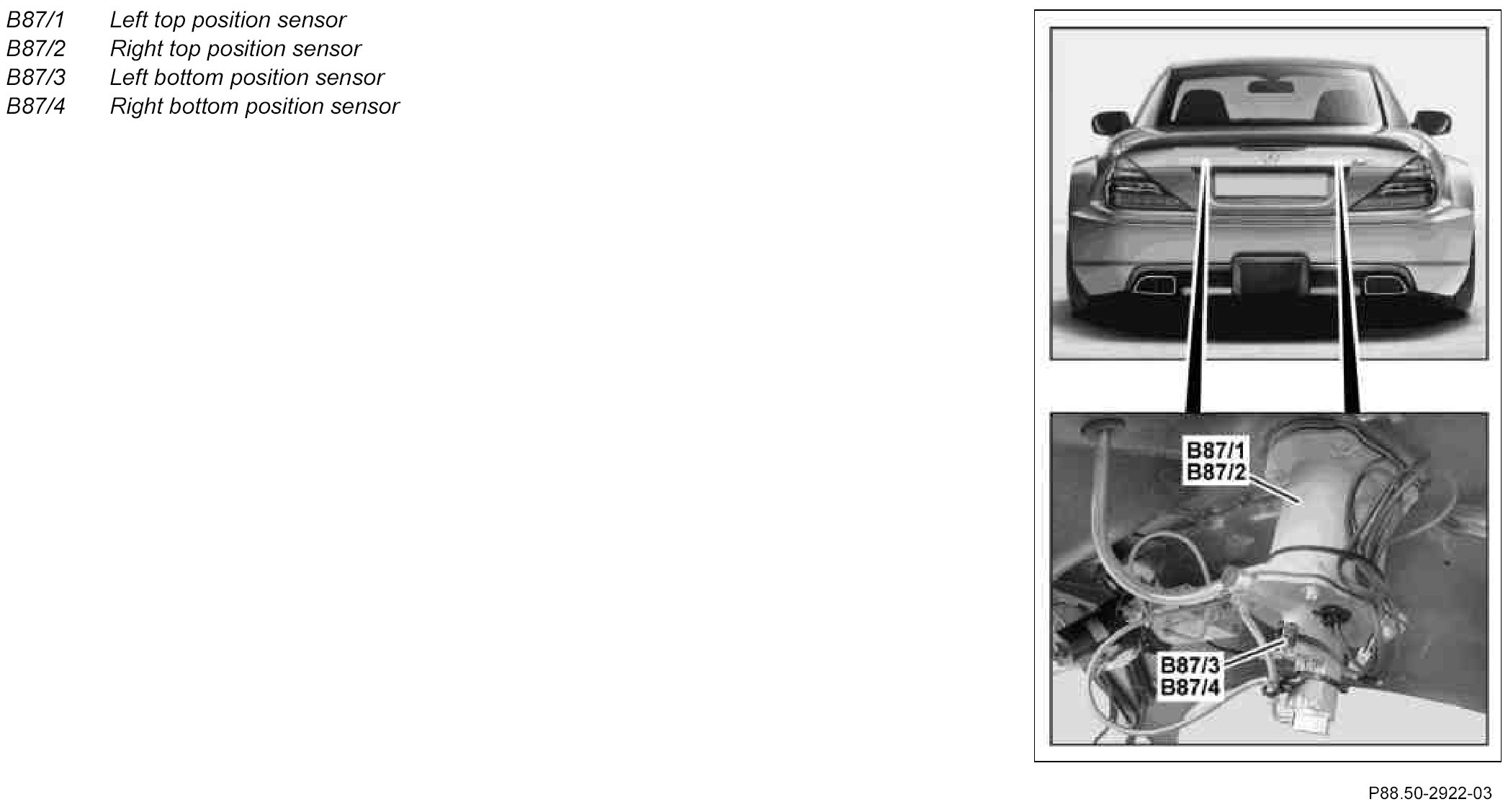 The position sensors sense the position of the rear wing. The status of the position sensor is read in by the AMG DRIVE UNIT control (N145).