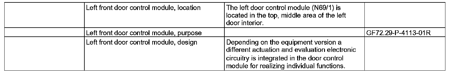 GF72.29-P-4113R Left Front Door Control Module, Location/Purpose/Design