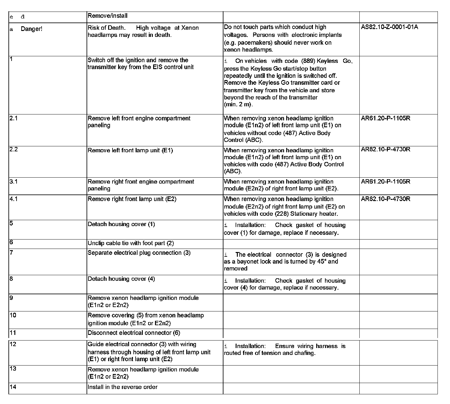 AR82.10-P-4633R Removing and Installing Xenon Lamp Ignition Module