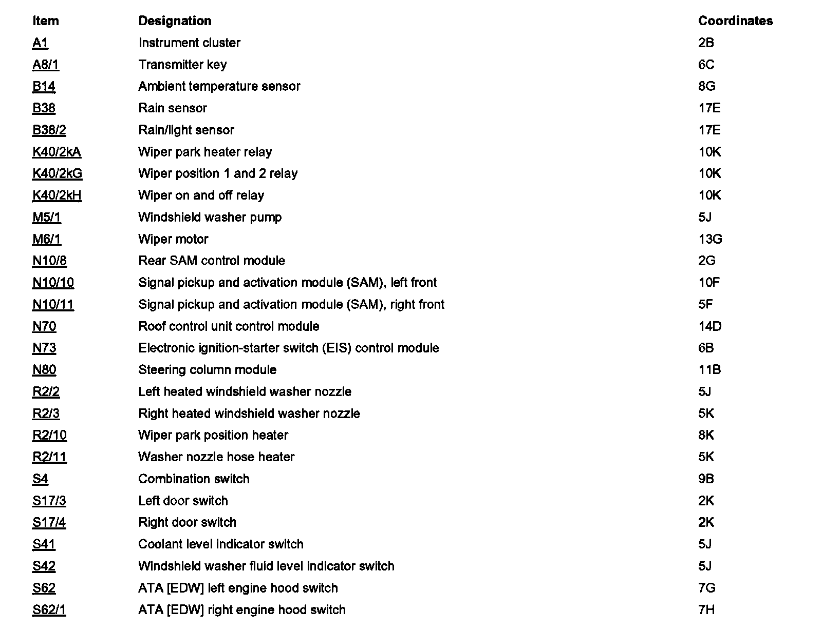 Component Locations: Component Location photographs can be found via their component names at the vehicle level. Component Locations