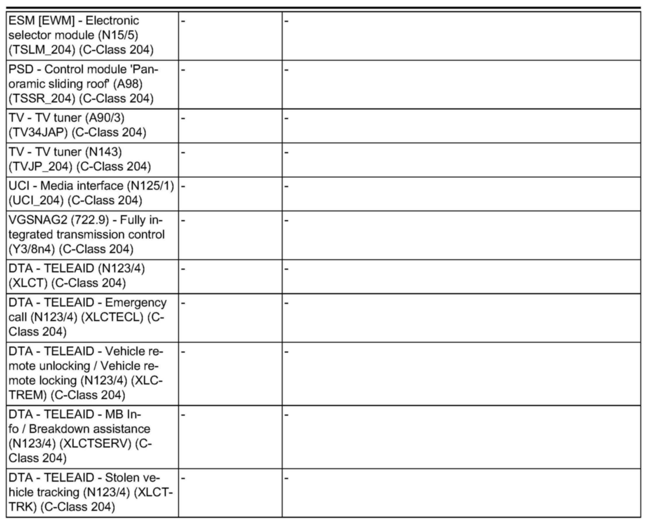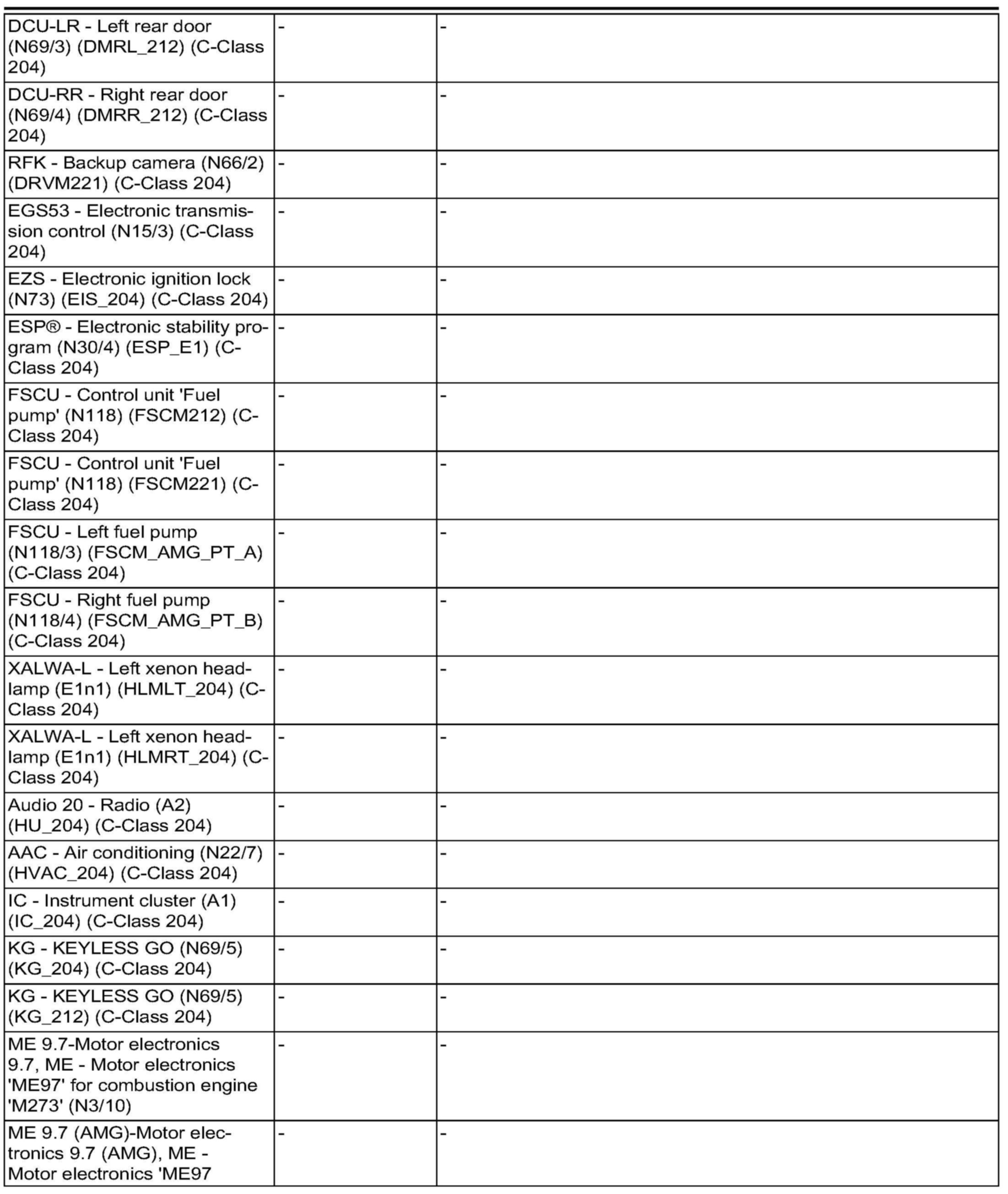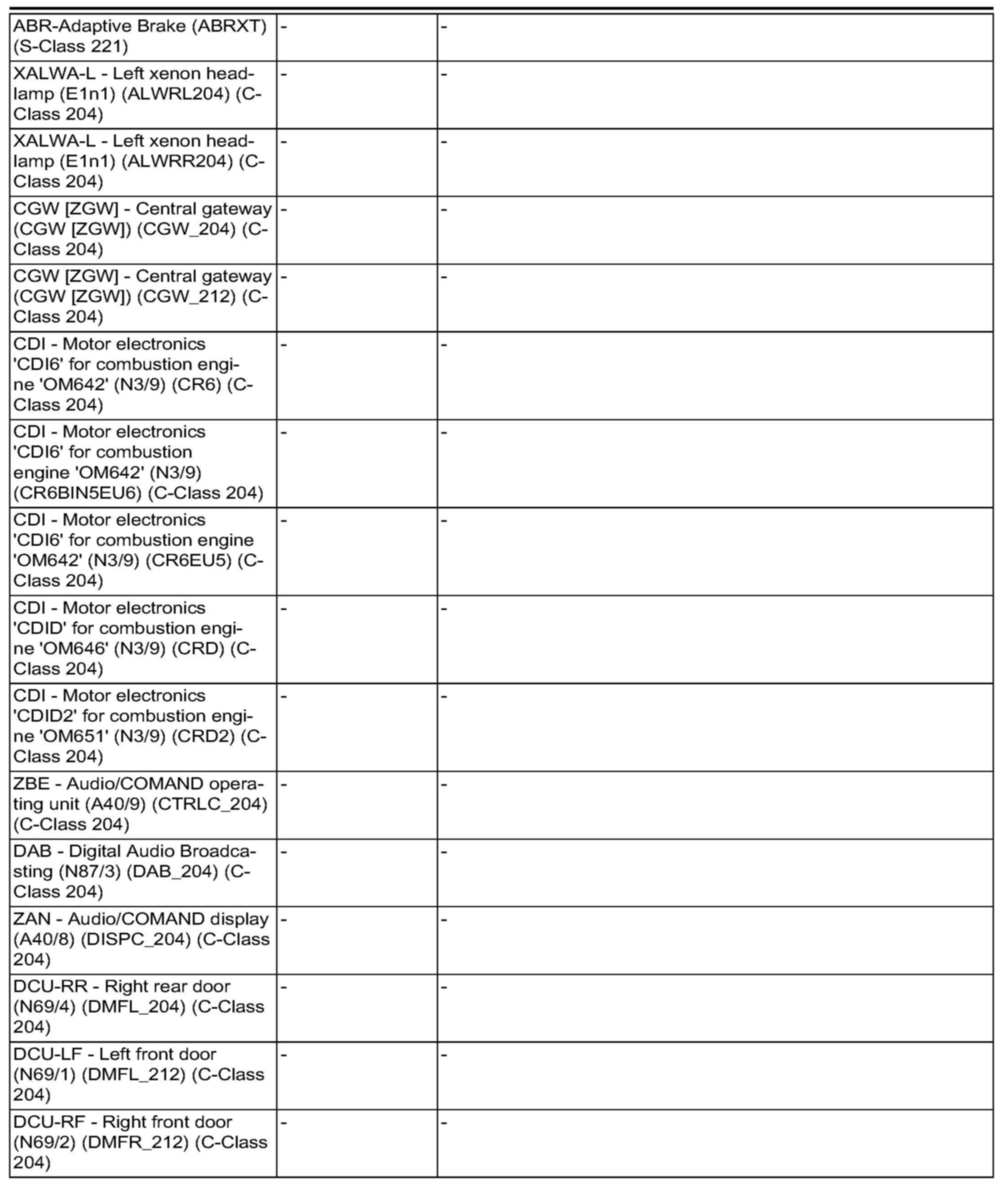 All CUs - Model series: 204 Menu items "Initial startup offline" and "Control unit programming offline" are not displayed for the C-Class (204).