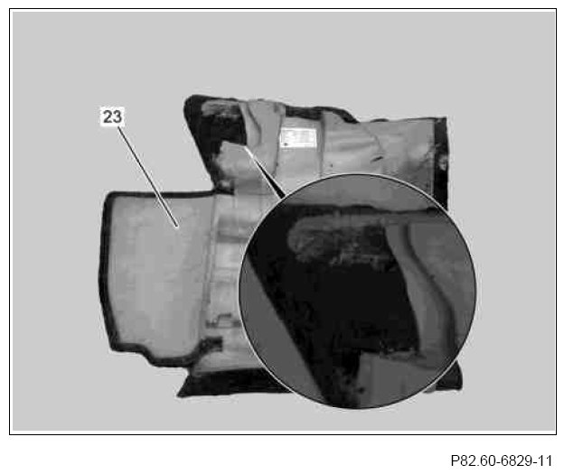 7 Remove foam damping material on the right front floor covering (23) in the area of the contact surface on the control unit using a suitable tool.