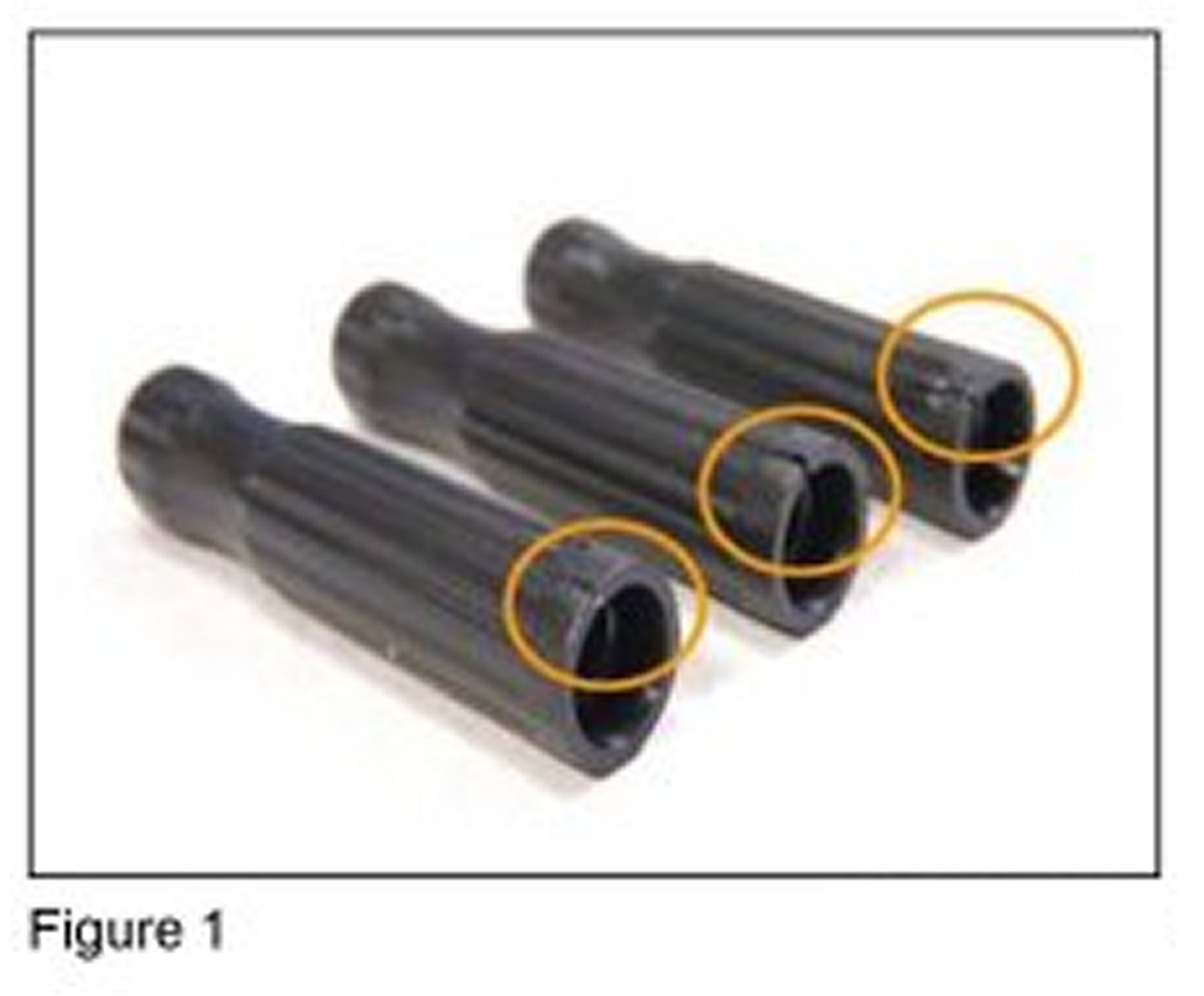 If you receive customer reports in the above model vehicles of the lock button being either cracked (Figure 1, circles) or missing from the rear doors, this may be due to an unfavorable stress tolerance between the end of the Bowden cable and the lock button. To resolve, replace the cracked button as per the below procedure.