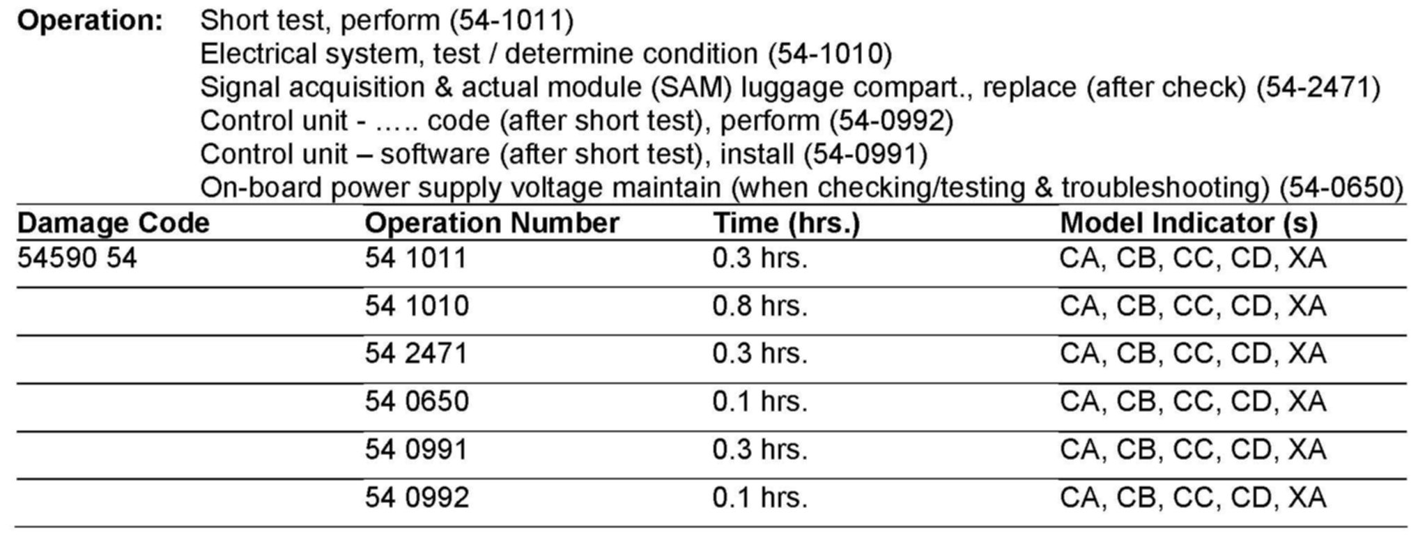When this condition occurs, it is possible that Circuit 30g cannot be measured at the prefuse box preventing correct diagnosis of the SAM or actuation of the no-load current switch since diagnosis is only possible when Circuit 30 or 30g are present. You can connect a battery charger to ckt30/30g to pin 30/32 (reference WIS Document GF54.15-P-1256-07CE for proper pin outs) in order to use DAS for actuation and diagnosis. If any of these circuits are missing, it may be caused by inoperative RSS switch, a line signal/contact to the RSS switch broken or the rear SAM unable to actuate the no-load current switch.