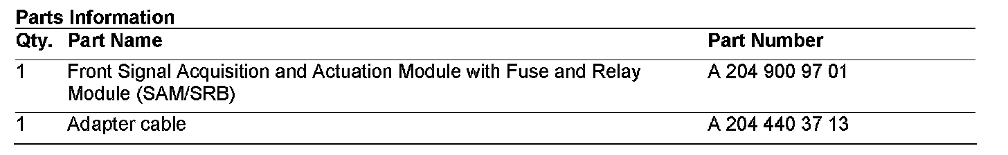 Module with Fuse and Relay Module (SAM/SRB) replace Part Information