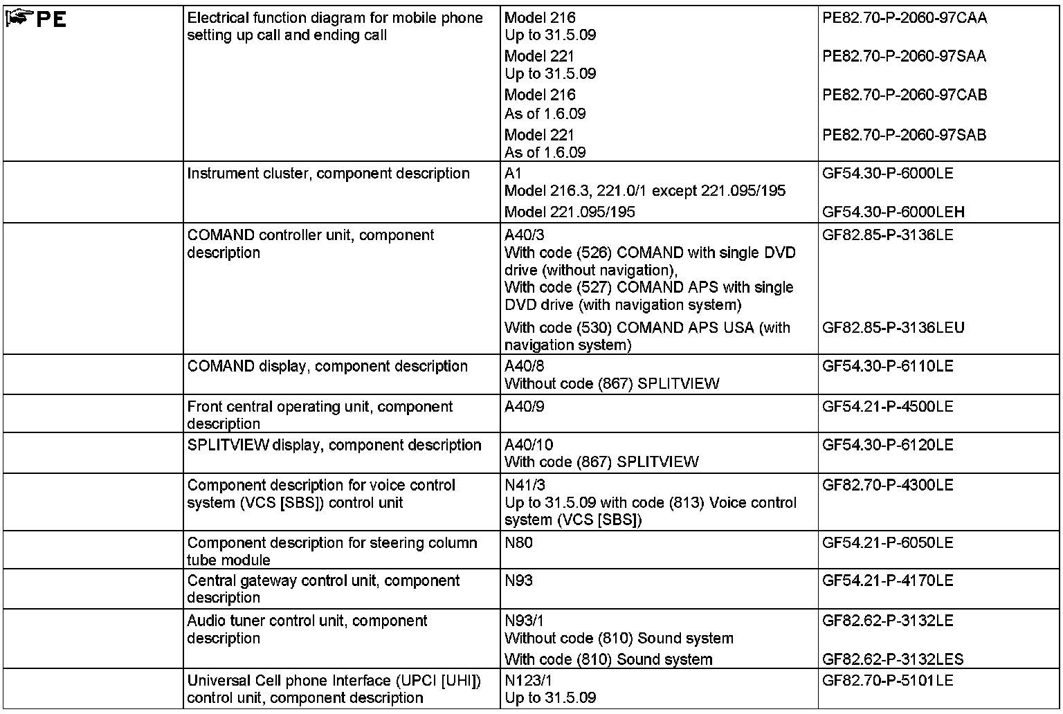 - Voice control of VCS [SBS] (up to 31.5.09 with code (813) Voice control system (VCS [SBS]), as of 1.6.09 standard equipment)