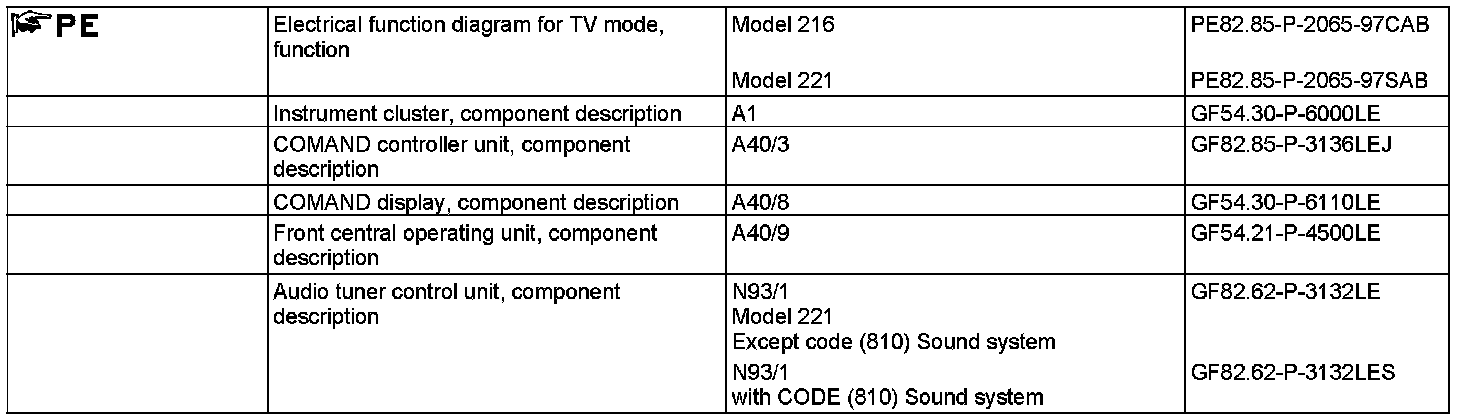 Once the TV signals have been processed in the COMAND controller unit, the audio signals are relayed to the audio tuner control unit (N93/1) via the Media Oriented System Transport (MOST) and then output on the following speakers via direct lines with model 216