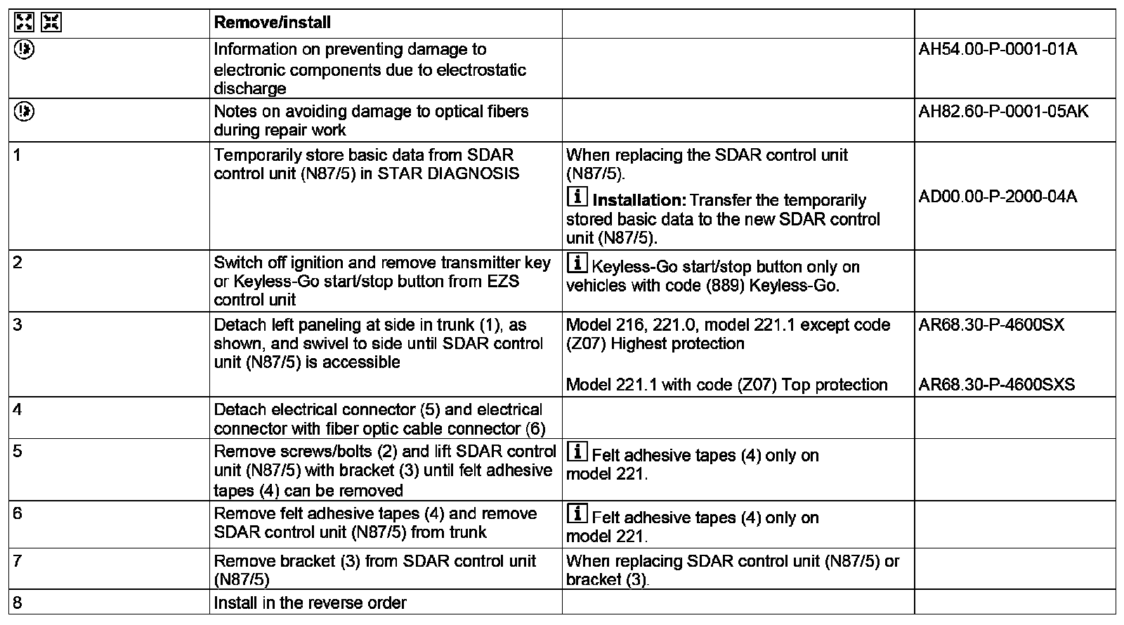 AR82.60-P-7545SC Remove/install Satellite Radio Control Unit