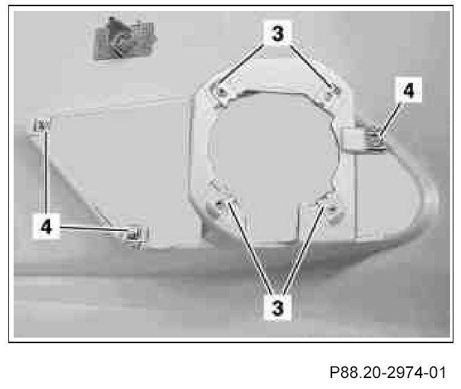 2. Insert sheet metal nuts for front fog lamps (3) (8 each) and air ducting grate (4) (6 each) into front bumper paneling (1) (see picture).