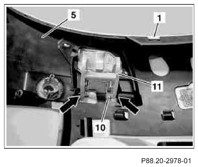 7. Install HCS springs (headlamp cleaning system) (10) on bearing guides for HCS cover (11).