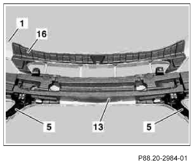 16. Insert center impact absorber at bottom (16) into front bumper paneling (1).