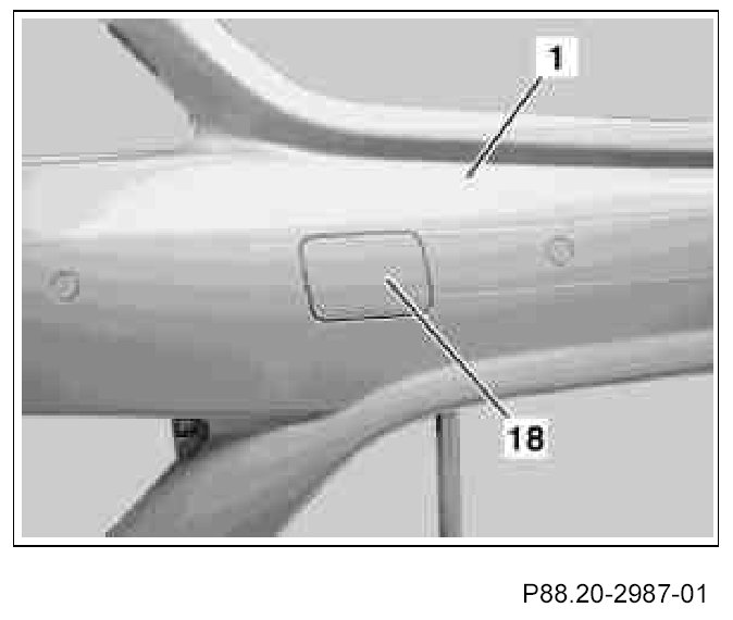 20. Insert towing eye cover (18) into front bumper paneling (1) and arrest.