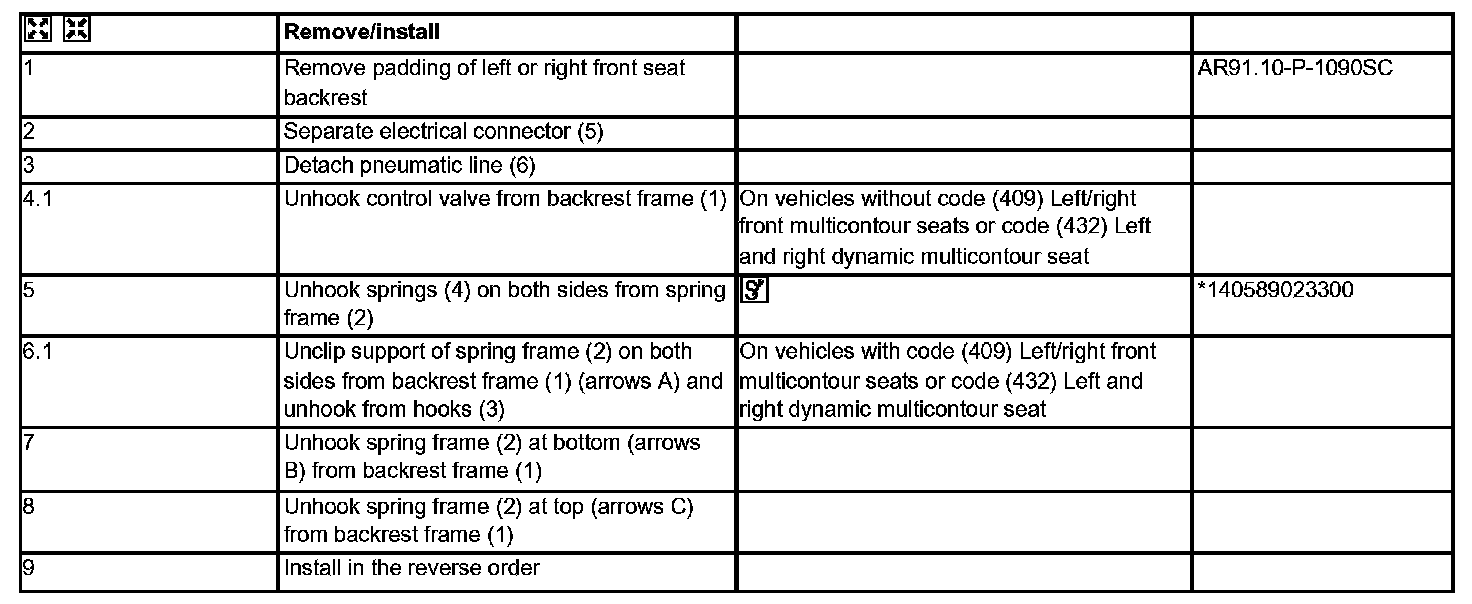 AR91.10-P-2050SC Remove/Install Spring Frame With Air Cushion on Front Seat Backrest