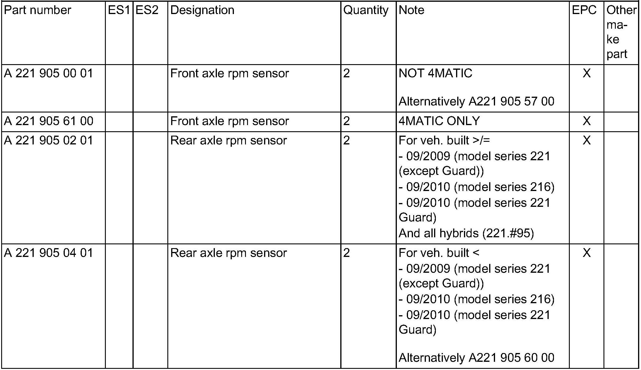 Model series 216 up to 11/2010