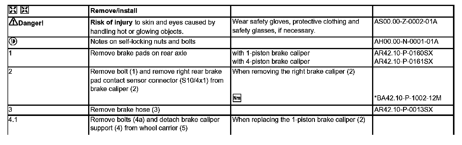 AR42.10-P-0080SX Remove/install rear axle brake caliperComponent Identification: