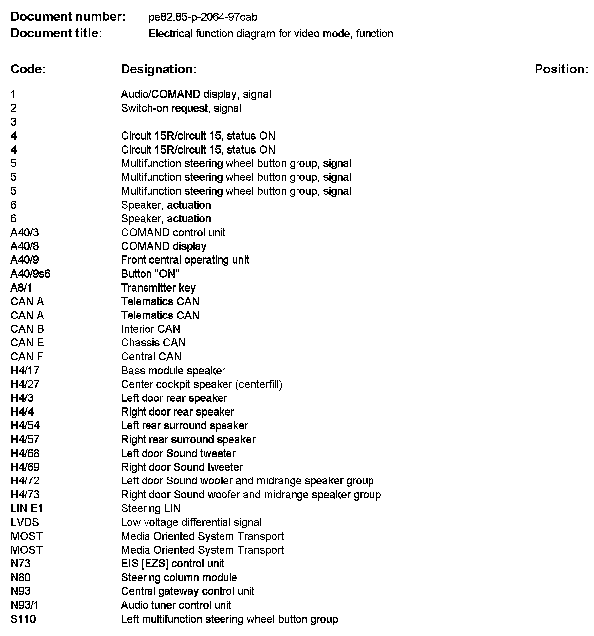 PE82.85-P-2064CAB Electrical Function Diagram For Video Mode, Function