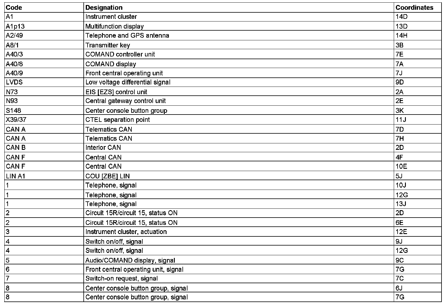 Component Description/Coordinates, A1 To 8: