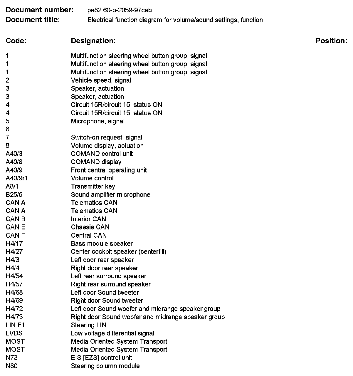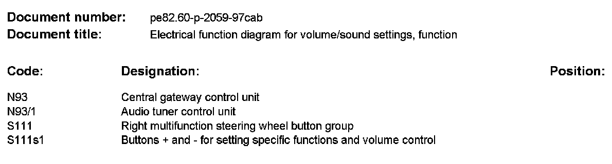 PE82.60-P-2059CAB Electrical Function Diagram For Volume/Sound Settings, Function